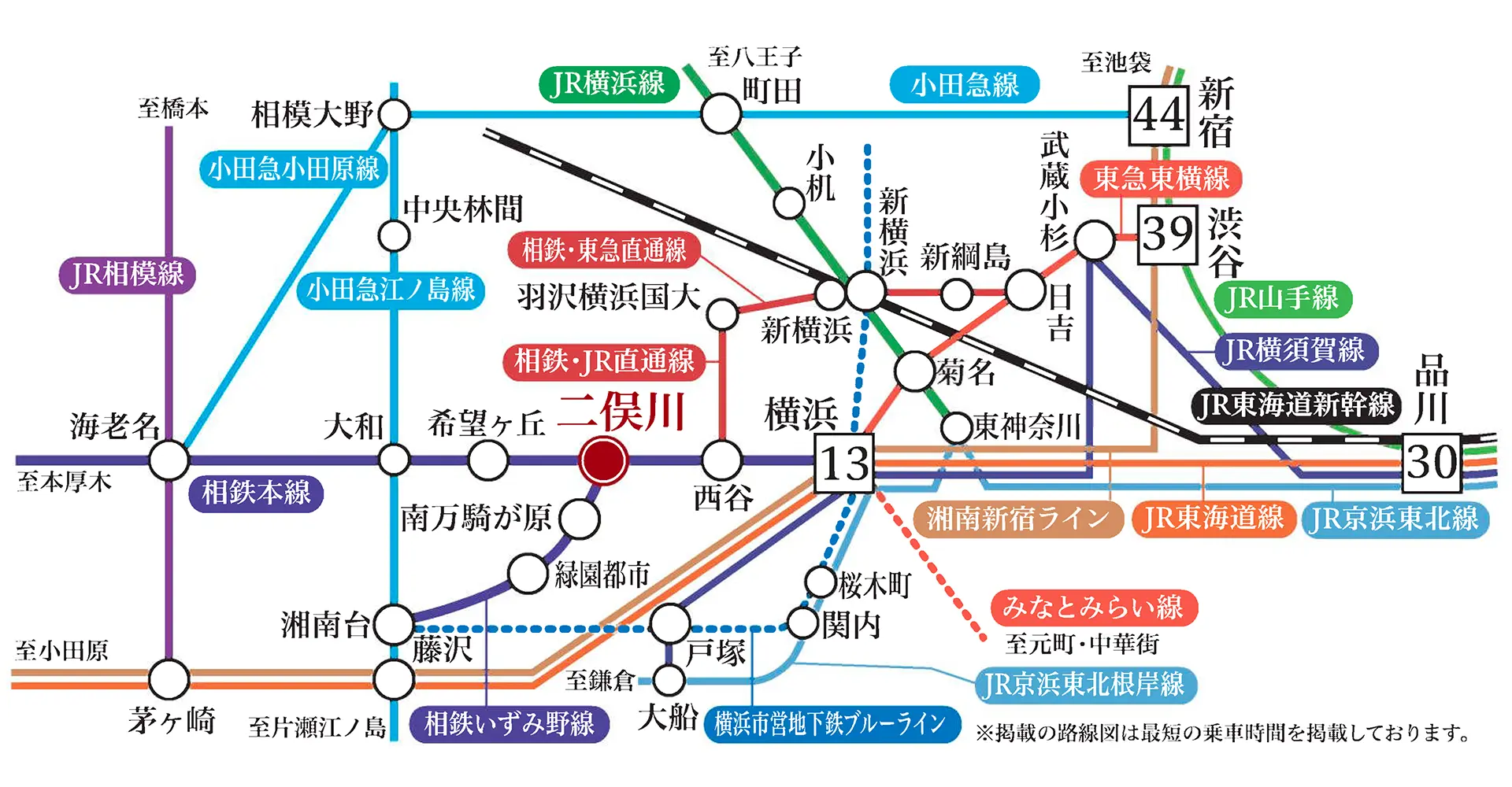 新横浜へ◯分ダイレクトアクセス。新幹線利用にもスムーズで、名古屋・大阪方面への移動も快適です。通勤・通学はもちろん、出張や旅行でも「二俣川」の便利さが際立ちます。