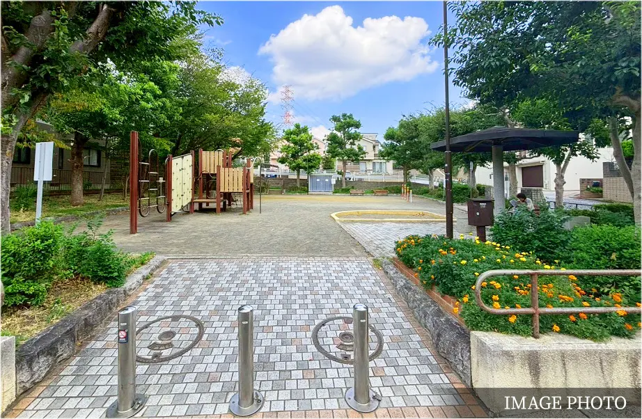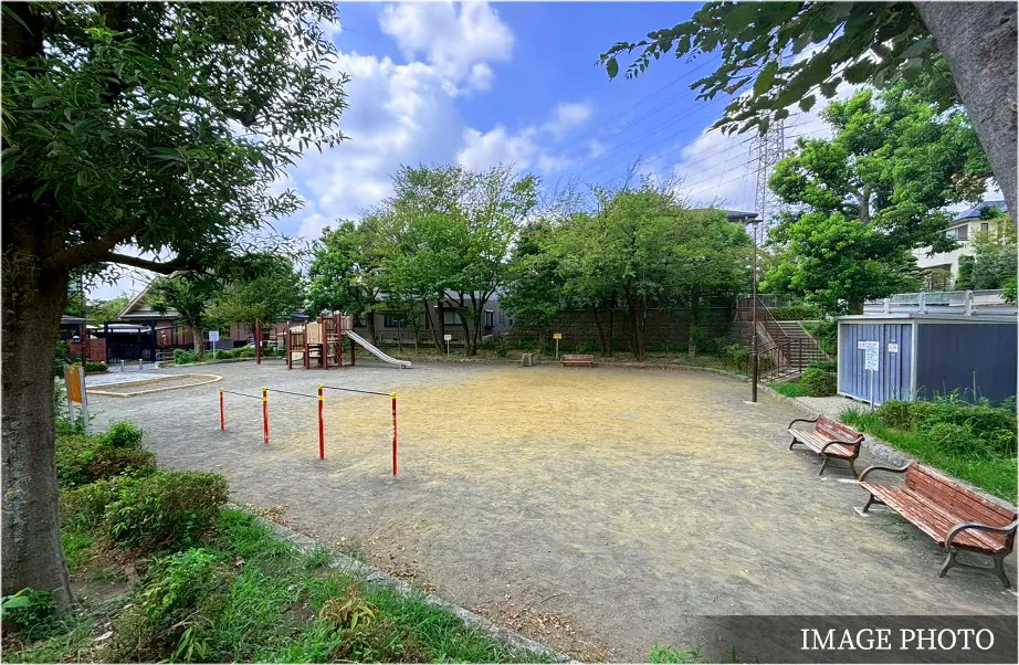 住宅街の中にある小ぶりな公園で、約徒歩15分と二俣川駅からのアクセスも良好です。落ち着いた雰囲気の木々に囲まれ、まるで隠れ家のような静かな環境が魅力です。園内には滑り台付きのコンビネーション遊具(ロッククライミング、のぼり棒、鉄棒など)があり、小さな子どもでも遊びやすいよう配慮されています。また、砂場や休憩できるベンチ、水飲み場も整っており、親子でのリラックスタイムにも適しています。